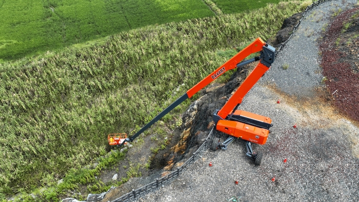 但其實(shí),除了高度外,還有一項(xiàng)參數(shù)常常被人所忽視,那就是曲臂特有的下探本領(lǐng)。鑒于曲臂結(jié)構(gòu)的特殊性,它不僅可以“上天”,還特別能“入地”——尤其是應(yīng)對(duì)那些需要深度下探的復(fù)雜工況,比如礦坑作業(yè)、陡坡作業(yè)等。